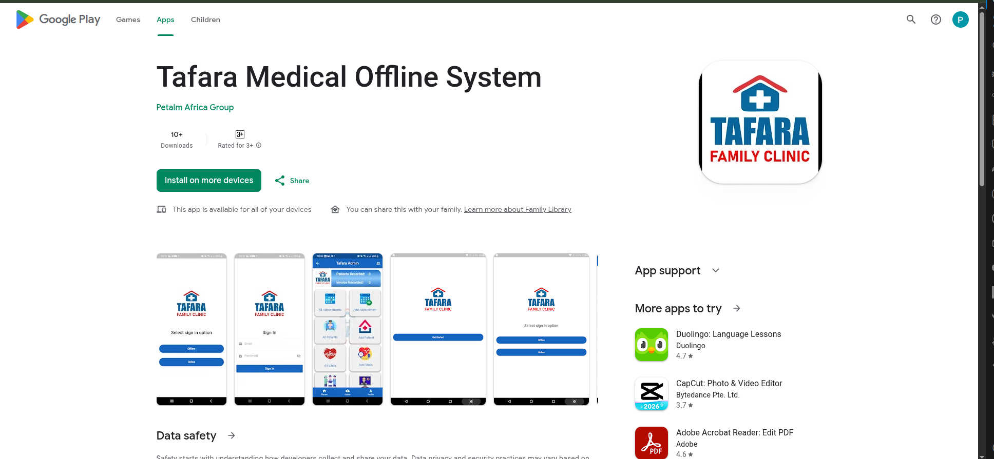 Tafara Health App is a comprehensive health management system developed for local clinics in Zimbabwe. It enables patient record management, offline-first clinical workflows, intelligent data insights powered by AI services, and secure payments through Paynow, improving efficiency and quality of care in resource-limited settings.
